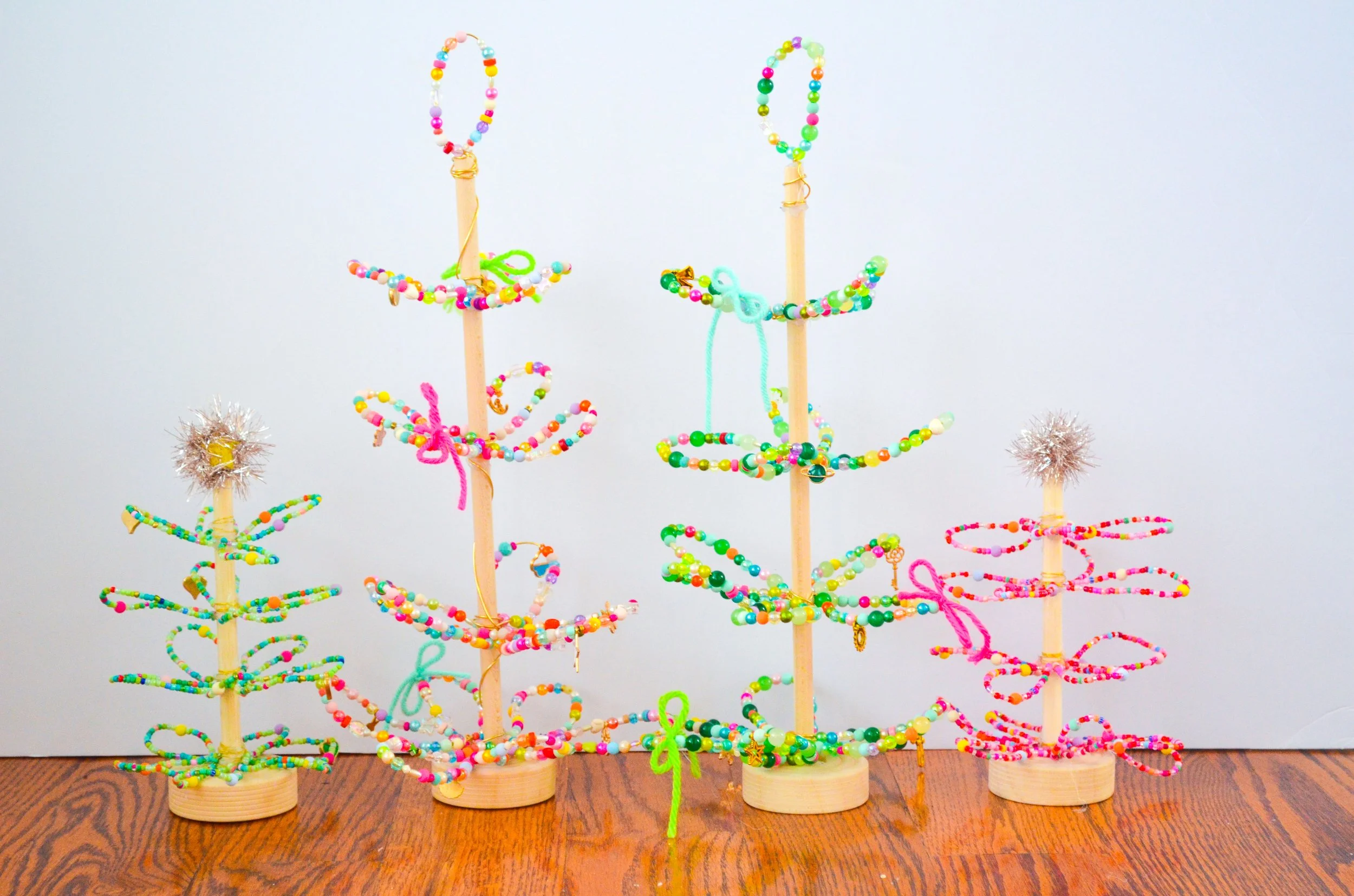While doing some online shopping at Free People recently, a cute beaded tree caught my eye. The price was not actually terrible for Free People, but I loved the idea and knew that it was something I wanted to recreate. And not just duplicate, recreate in a few different ways! I’m sharing my first tree craft today: beaded Christmas trees. Keep your eyes open for two other versions of these trees using the same basic structure!