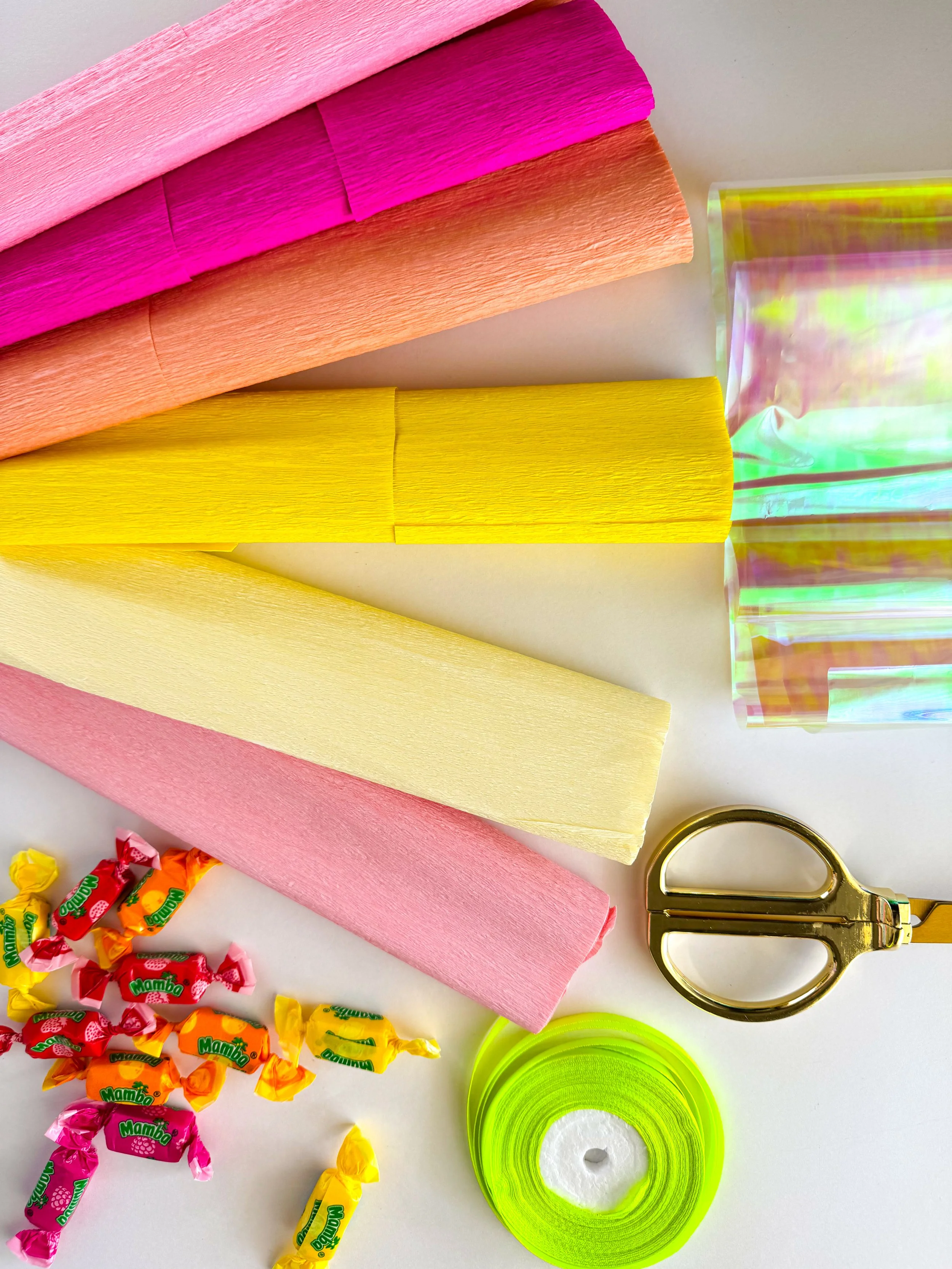 Ribbon - Thinner ribbon works best. I loved this neon green color with the crepe paper colors!